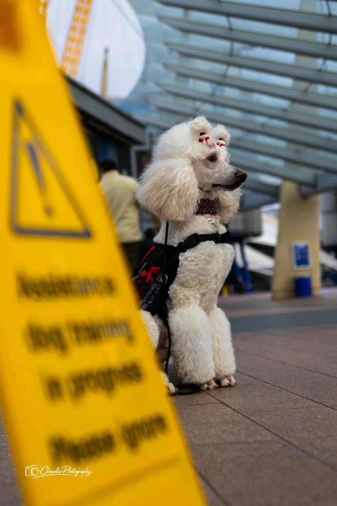 Assistance dogs are dogs trained to perform tasks that mitigate their handler's disability. They are protected by the Equality Act 2010 which allows them to accompany their handler (almost) anywhere. It is illegal for a public business to refuse access to a disabled individual and their assistance dog. This is because an assistance dog is considered an auxiliary aid the same as a cane or wheelchair, refusing an assistance dog could be considered discrimination.
